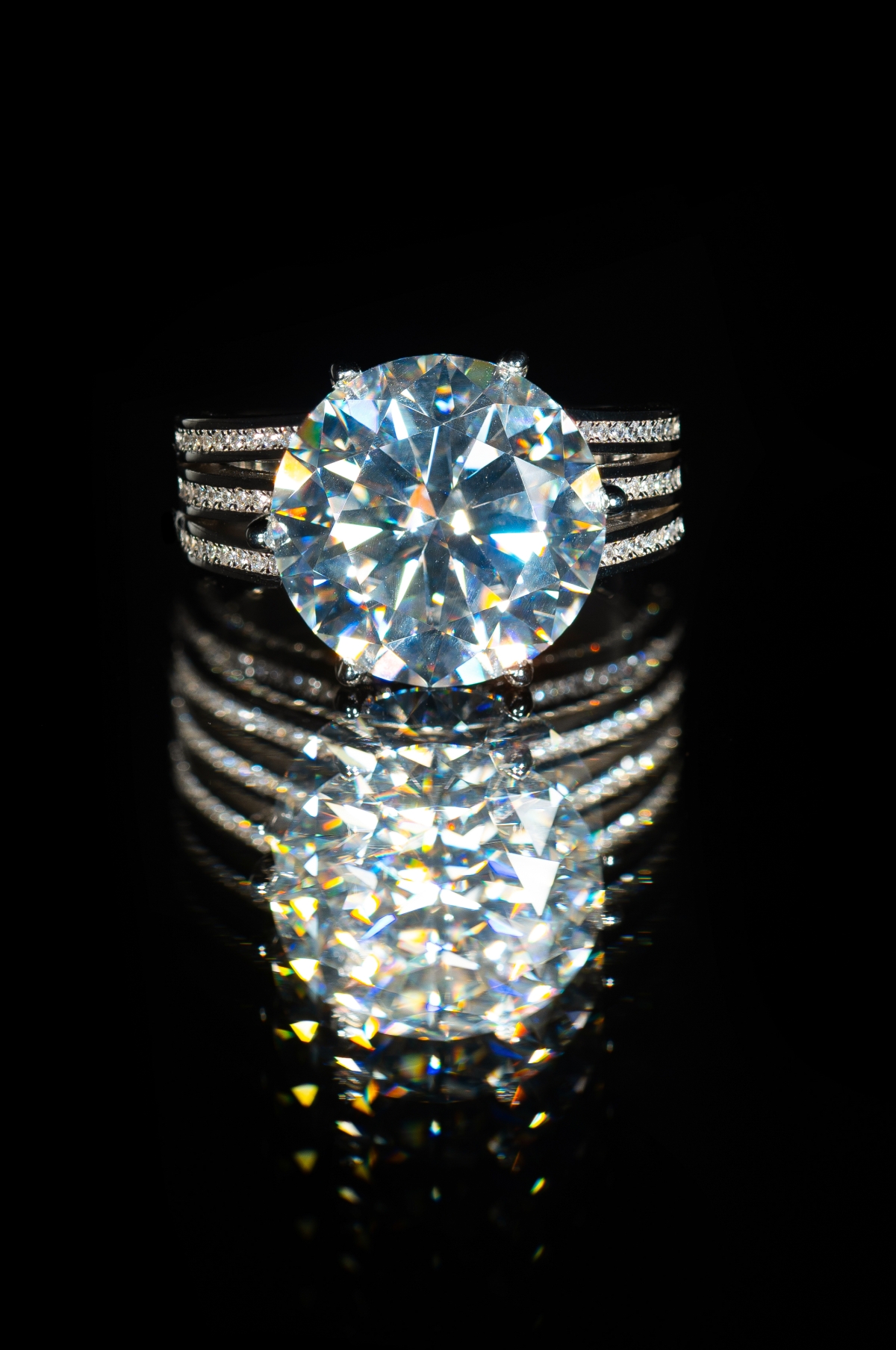 Round brilliant άχρωμος μοϊσανίτης  με μικρότερους μοισανίτες στα πλαινά σε σχέδιο pave