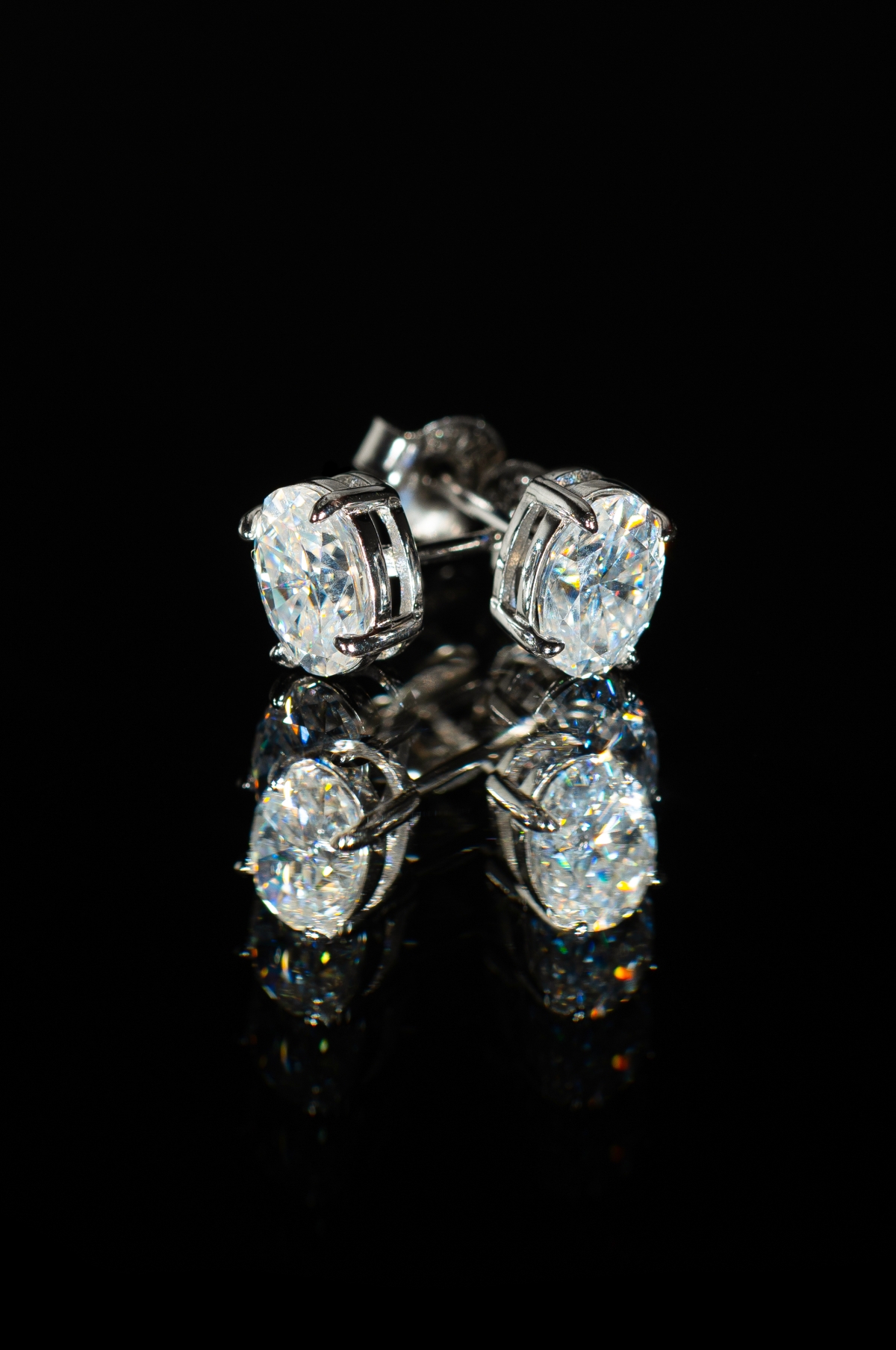 Oval brilliant άχρωμα σκουλαρίκια μοϊσανίτη