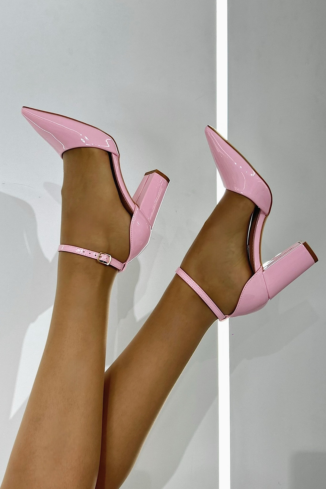 Ένα άνετο λούστρινο τακούνι σε μπέζ ,κόκκινο, ρόζ και γαλάζιο χρώμα