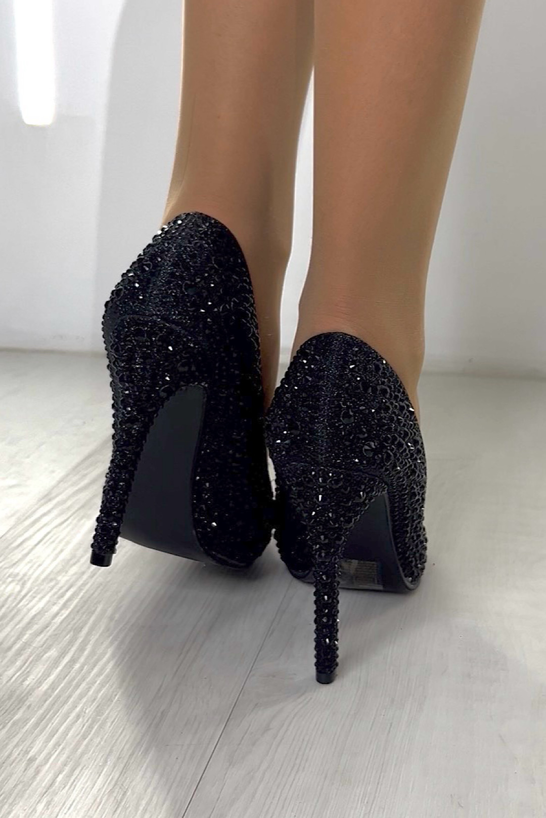 Γόβες σε σαμπανιζέ και μαύρο χρώμα με λαμπερές πέτρες