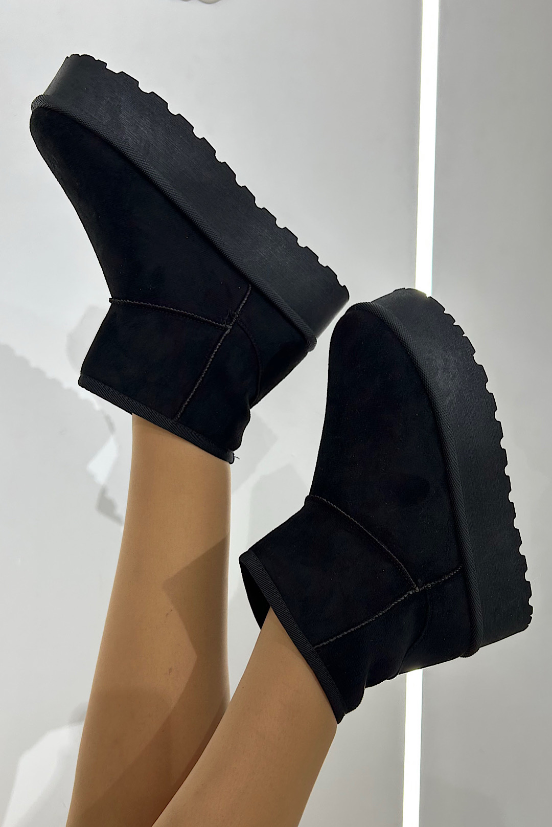 Δίπατα μποτάκια σε μαύρο , μπέζ και εκρού με συνθετική γούνα στο εσωτερικό