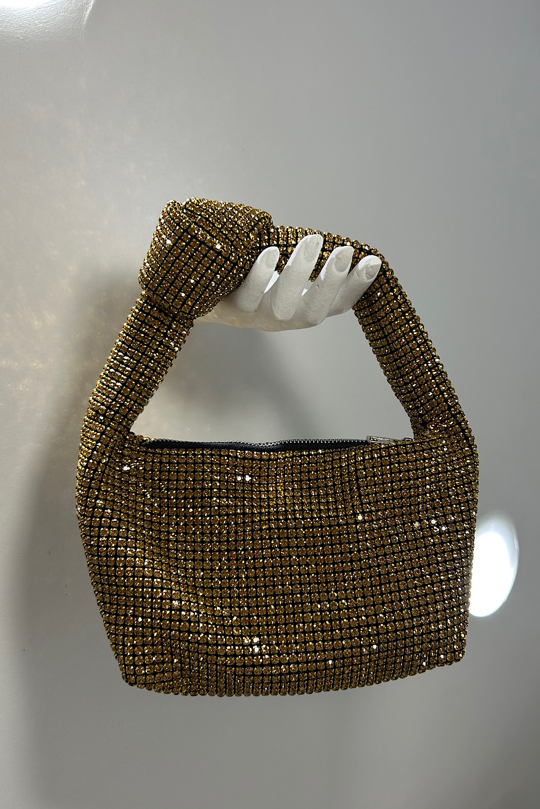 Μαύρη τσάντα με χρυσά στρας και φερμουάρ